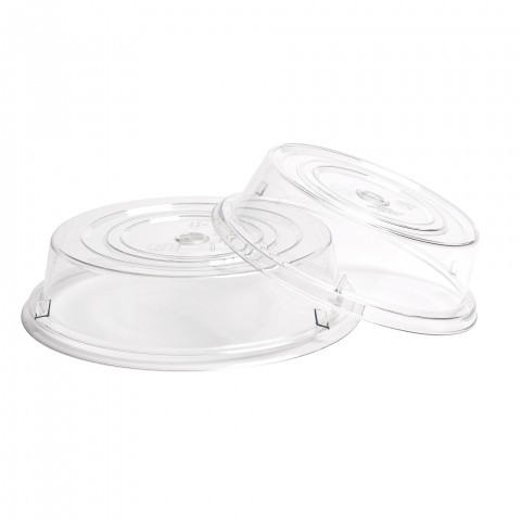 Camwear® Camcover®, 10-13/16" dia. inside, 2-11/16"H outside, round, with no ventilation hole, stackable, for heated carts up to 210°F, lightweight polycarbonate, dishwasher safe, clear, NSF