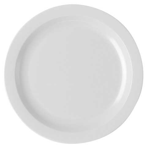 Camwear® Plate, 10" dia., narrow rim, non-porous surface, smooth glossy finish, scratch resistant, textured surface, polycarbonate, white, NSF