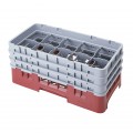Camrack® Glass Rack, with (3) soft gray extenders, half size, 10" x 19-3/4" x 8-7/8", (10) compartments, 3-7/16" max. dia., 6-7/8" max. height, cranberry, HACCP compliant, NSF