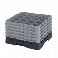 Camrack® Glass Rack, with (5) soft gray extenders, full size, 19-3/4" x 19-3/4" x 12-1/8", (16) compartments, 4-3/8" max. dia., 11" max. height, black, HACCP compliant, NSF, Made in USA
