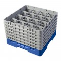 Camrack® Glass Rack, with (6) soft gray extenders, full size, 19-3/4" x 19-3/4" x 13-3/4", (16) compartments, 4-3/8" max. dia., 11-3/4" max. height, blue, HACCP compliant, NSF