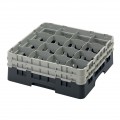 Camrack® Glass Rack, with (2) soft gray extenders, full size, 19-3/4" x 19-3/4" x 7-1/4", (16) compartments, 4-3/8" max. dia., 6-1/8" max. height, black, HACCP compliant, NSF