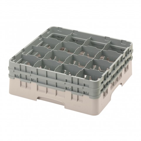 Camrack® Glass Rack, with (2) soft gray extenders, full size, 19-3/4" x 19-3/4" x 7-1/4", (16) compartments, 4-3/8" max. dia., 6-1/8" max. height, beige, HACCP compliant, NSF
