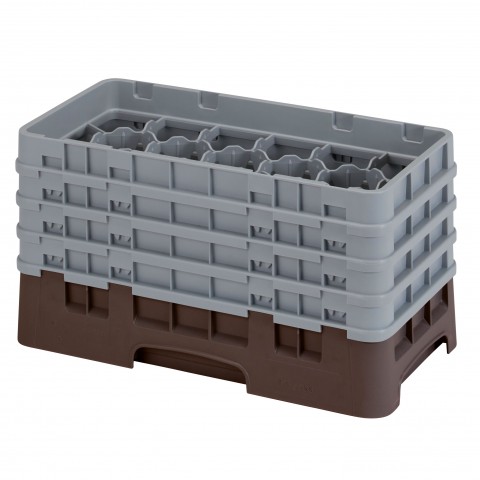 Camrack® Glass Rack, with (4) soft gray extenders, half size, 10" x 19-3/4" x 10-1/2", (17) compartments, 2-7/8" max. dia., 8-1/2" max. height, brown, HACCP compliant, NSF