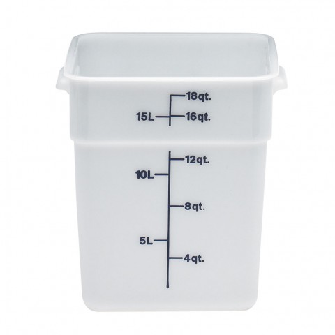 CamSquare® Food Container, 18 qt., 11-1/4"L x 12-1/4"W x 12-5/8"H, with handles, blue graduation, polyethylene, dishwasher safe, resists stains & odors, natural white, NSF