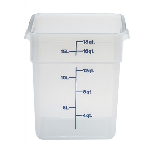 CamSquare® Food Container, 18 qt., 11-1/4"L x 12-1/4"W x 12-5/8"H, with handles, blue graduation, polypropylene, dishwasher safe, resists stains & odors, translucent, NSF