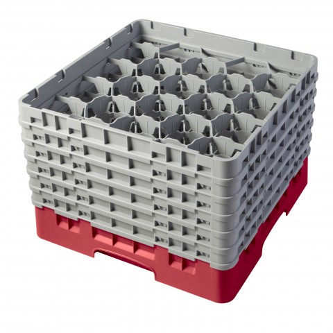 Camrack® Glass Rack, with (6) soft gray extenders, full size, 19-3/4" x 19-3/4" x 13-3/4", (20) compartments, 3-7/8" max. dia., 11-3/4" max. height, red, HACCP compliant, NSF