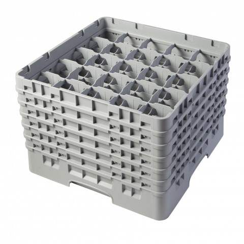 Camrack® Glass Rack, with (6) soft gray extenders, full size, 19-3/4" x 19-3/4" x 13-3/4", (25) compartments, 3-7/16" max. dia., 11-3/4" max. height, soft gray, HACCP compliant, NSF