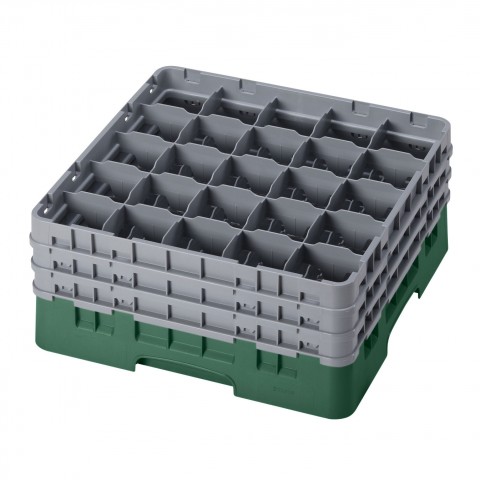 Camrack® Glass Rack, with (3) soft gray extenders, full size, low profile, 19-3/4" x 19-3/4" x 8-7/8", (25) compartments, 3-7/16" max. dia., 7-3/4" max. height, Sherwood green, HACCP compliant, NSF