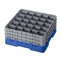 Camrack® Glass Rack, with (3) soft gray extenders, full size, low profile, 19-3/4" x 19-3/4" x 8-7/8", (25) compartments, 3-7/16" max. dia., 7-3/4" max. height, blue, HACCP compliant, NSF