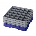 Camrack® Glass Rack, with (3) soft gray extenders, full size, low profile, 19-3/4" x 19-3/4" x 8-7/8", (25) compartments, 3-7/16" max. dia., 7-3/4" max. height, navy blue, HACCP compliant, NSF