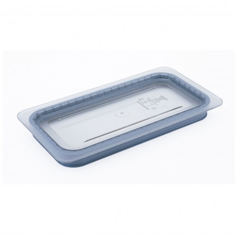 Camwear® GripLid®, fits GN 1/3 size food pan, 6-15/16" x 12-3/4", corner lift, dishwasher safe, stackable, molded in polyurethane gasket, polycarbonate, clear, FDA approved materials, NSF