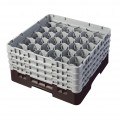 Camrack® Glass Rack, with (4) soft gray extenders, full size, 19-3/4" x 19-3/4" x 10-1/2", (30) compartments, 3-1/8" max. dia., 8-1/2" max. height, brown, HACCP compliant, NSF