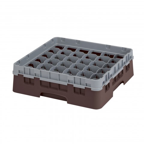 Camrack® Glass Rack, with soft gray extender, full size, 19-3/4" x 19-3/4" x 5-5/8", (36) compartments, 2-7/8" max. dia., 3-5/8" max. height, brown, HACCP compliant, NSF