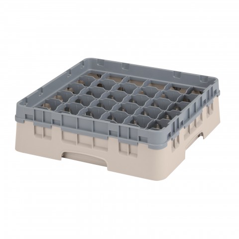 Camrack® Glass Rack, with soft gray extender, full size, 19-3/4" x 19-3/4" x 5-5/8", (36) compartments, 2-7/8" max. dia., 3-5/8" max. height, beige, HACCP compliant, NSF