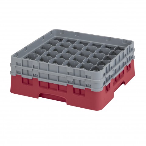 Camrack® Glass Rack, with (2) soft gray extenders, full size, low profile, 19-3/4" x 19-3/4" x 7-1/4", (36) compartments, 2-7/8" max. dia., 5-1/4" max. height, cranberry, HACCP compliant, NSF