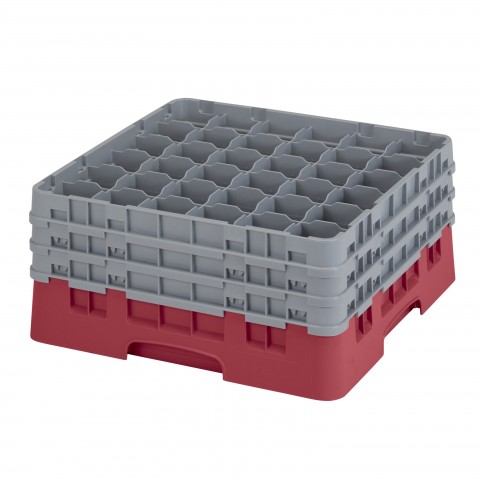 Camrack® Glass Rack, with (3) soft gray extenders, full size, low profile, 19-3/4" x 19-3/4" x 8-7/8", (36) compartments, 2-7/8" max. dia., 7-3/4" max. height, cranberry, HACCP compliant, NSF