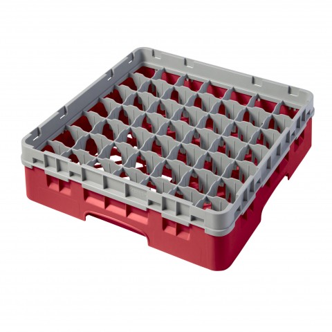 Camrack® Glass Rack, with soft gray extender, full size, 19-3/4" x 19-3/4" x 5-5/8", (49) compartments, 2-7/16" max. dia., 3-5/8" max. height, red, HACCP compliant, NSF
