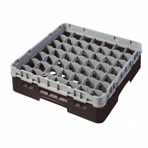 Camrack® Glass Rack, with soft gray extender, full size, 19-3/4" x 19-3/4" x 5-5/8", (49) compartments, 2-7/16" max. dia., 3-5/8" max. height, brown, HACCP compliant, NSF