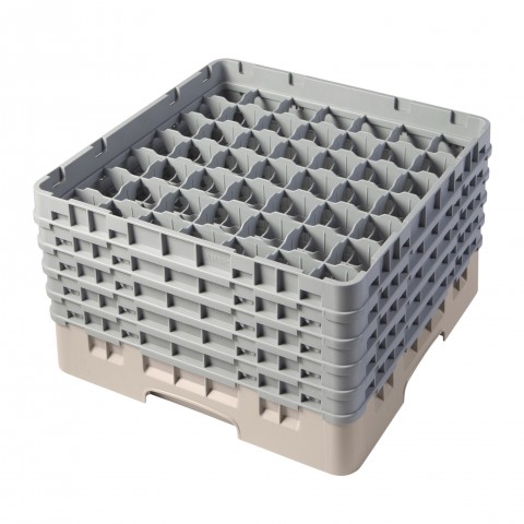 Camrack® Glass Rack, with (5) soft gray extenders, full size, 19-3/4" x 19-3/4" x 12-1/8", (49) compartments, 2-7/16" max. dia., 10-1/8" max. height, beige, HACCP compliant, NSF