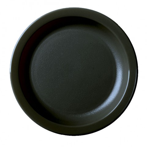 Camwear® Plate, 5-1/2" dia., narrow rim, non-porous surface, smooth glossy finish, scratch resistant, textured surface, polycarbonate, black, NSF