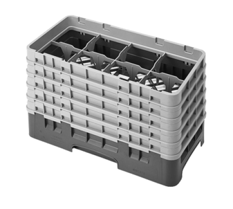 Camrack® Glass Rack, with (5) soft gray extenders, half size, 10" x 19-3/4" x 12-1/8", (8) compartments, 4-1/16" max. dia., 10-1/8" max. height, cranberry, HACCP compliant, NSF