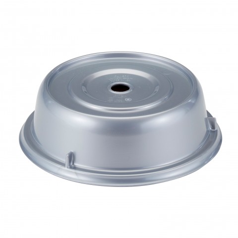 Camwear® Camcover®, inside dia. 9-1/8", outside height 2-3/4", stackable, for heated carts up to 210°F, lightweight polycarbonate, dishwasher safe, silver, NSF