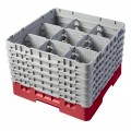 Camrack® Glass Rack, with (6) soft gray extenders, full size, 19-3/4" x 19-3/4" x 13-3/4", (9) compartments, 5-7/8" max. dia., 11-3/4" max. height, red, HACCP compliant, NSF