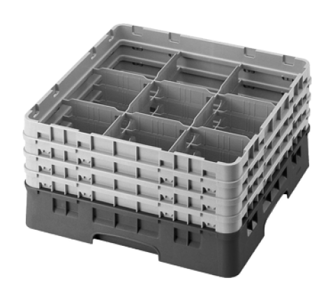 Camrack® Glass Rack, with (3) soft gray extenders, full size, 19-3/4" x 19-3/4" x 8-7/8", (9) compartments, 5-7/8" max. dia., 6-7/8" max. height, brown, HACCP compliant, NSF