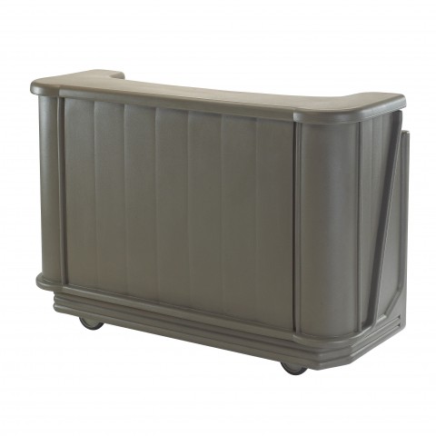 Cambar® Portable Bar, 67-1/2"L x 28-1/2"W x 47-1/2"H, post-mix system, includes 80 lb. ice sink with slide back cover, waster water bin, eight circuit sealed-in cold plate, retainer strap, detachable oversized 7-bottle speed rail with towel grips, detachable front, Wunder-Bar® 5-button post-mix gun, (1) carbonator, (3) syrup pumps, (1) CO2 regulator and gauge, (1) CO2 clamp and chain, (1) steel bag-in-box rack, tubing, hose and lines, vinyl cover, (4) 6" swivel casters, 2 with brakes, reinforced aluminum chassis and polyurethane structural foam core, molded high-density polyethylene construction, 110v without plug, granite sand