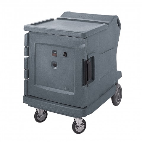 Camtherm® Hot Cart, 30-1/2"W x 42"D x 42-3/8"H, electric, low profile, single door, holds (11) 18 X 26 sheet pans (requires five additional rail sets), (12) 12" x 20" x 2-1/2" deep food pans, (8) 12" x 20" x 4" deep food pans, (6) 12" x 20" x 6" deep food pans, or (4) 12" x 20" x 8" deep food pans, temperature control dial, on-off power switch, adjustable chrome plated steel slide rails, Fahrenheit solar digital thermometer, molded-in handles & bumpers, nylon door latches, serving top, with vent, menu clip, polyethylene exterior, (2) 6" front swivel casters with brakes & (2) 10" rigid rear casters, cord/plug, granite gray, 110v/50/60/1-ph, 1035 watts, 9.1 amps, NEMA 5-15P, NSF, ENERGY STAR®, cETLus