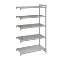Camshelving® Premium Add-On Unit, 18"W x 30"L x 84"H, 5-tier, withstands temperature from -36°F (-38°C) to 190°F (88°C), includes: (4) vented and (1) solid polypropylene shelf plates with Camguard® antimicrobial protection, (1) unassembled post kit (posts constructed of steel with polypropylene exterior), (10) traverses & molded-in dovetails, 800 lbs. capacity per shelf /2,000 lbs. max capacity, speckled gray, NSF