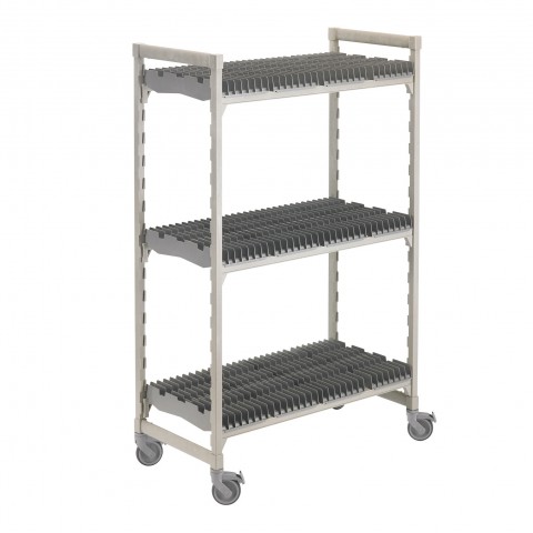 Camshelving® Premium Series Mobile Drying Rack Cart, 24"W x 60"L x 75"H, holds (105) trays, includes: drying racks for (3) levels, (6) mobile traverses, (2) pre-assembled mobile post kits, (4) premium swivel casters with total locking brake, max. weight bearing 900 lbs., speckled gray, NSF listed components