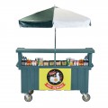 Camcruiser® Vending Cart, 74-1/2" x 31-3/4" x 94"H, (4) full size counter top wells, (3) rear compartments (2 holding, 1 open), includes (1) white polyethylene cutting board, 72" dia, umbrella, accommodates cash box and tray, removable menu board, (4) 8" swivel casters with brakes, polyethylene, granite green with green & white umbrella, Made in USA
