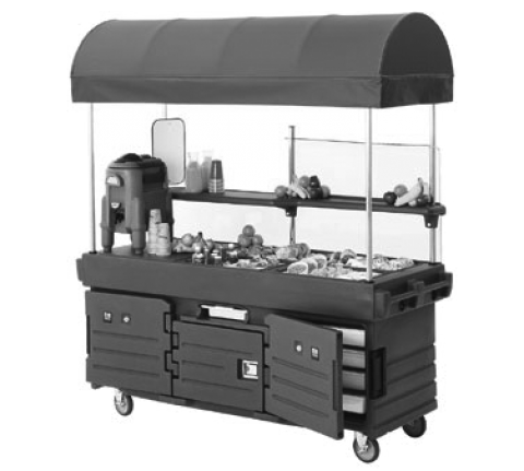 CamKiosk® Cart, with 4 pan wells and Kentucky green canopy, 85-1/8" x 33-1/2" x 94", polyethylene construction, (4) 6" swivel casters, 2 with brakes, foam insulation, granite gray