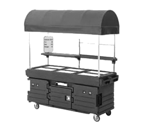 CamKiosk® Cart, with 6 pan wells and Kentucky green canopy, 85-1/8" x 33-1/2" x 94", polyethylene construction, foam insulation, (4) 6" swivel casters, 2 with brakes, Kentucky green