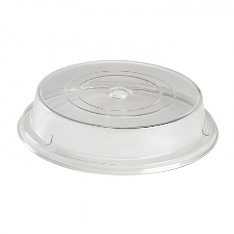 Camwear® Camcover®, low profile, inside dia. 9-1/8", outside height 2", stackable, for heated carts up to 210°F, lightweight polycarbonate, dishwasher safe, clear, NSF