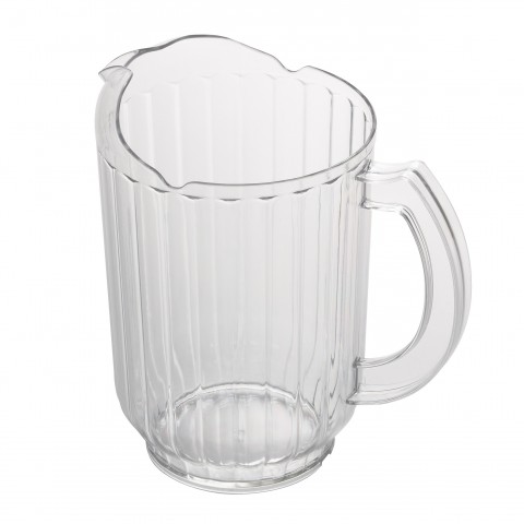 Camwear® Pitcher, 60 oz., 7-3/8" dia. x 7-7/8"H, ice-control contoured lip, pouring spout, slotted base, dishwasher safe, polycarbonate, clear, NSF