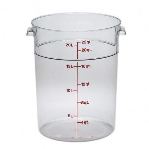 Camwear® Storage Container, round, 22 qt., 14-7/8" dia. x 15"H, withstands temperature of -40° F to 210° F, stain resistant, molded-in handle, durable polycarbonate construction, (covers sold separately), clear, NSF