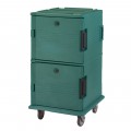 Ultra Camcart® Food Pan Carrier, front loading, one-piece double wall polyethylene shell, foam insulation, holds (24) 2-1/2" deep full size pans, (16) 4" deep full size pans, (12) 6" deep full size pans, (8) 8" deep full size pans, approximate capacity 120 qt., security package, tamper resistant, molded-in handles & bumpers, nylon latch, air-tight gasket, vent cap, (4) heavy duty 6" casters (2 fixed, 2 swivel with brakes), green, NSF