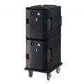 Ultra Camcart® Heated Food Pan Carrier, 20-1⁄2"W x 27-1⁄8"D x 54"H, front loading, one-piece double wall polyethylene shell, polyurethane foam insulated, holds (12) 2-1/2" deep food pans, (8) 4" deep food pans, (6) 6" deep food pans, (4) 8" deep food pans, molded-in handles, nylon latch, vent cap, 9' power cord, (4) 6" casters (2 swivel, 2 fixed, 1 with brake), 110v/50/60/1-ph, 230 watts, 2.0 amps, NEMA 5-15P, black, NSF, ENERGY STAR®, cETLus, CE