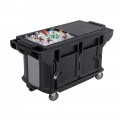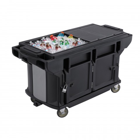 Versa Food Bar™ Work Table, cold food, 6 ft. unit, 82"L x 27"W x 36-1/4"H, holds (5) full size food pans, cooled with optional Camchillers® or ColdFest®, (2) storage compartments with lockable doors, double-wall polyethylene construction with foam injected polyurethane, molded-in handles, threaded faucet drain with standard hose hook-up on underside of well, non-electrical, includes matching well covers, (4) 6" heavy duty swivel casters with brakes, black, NSF