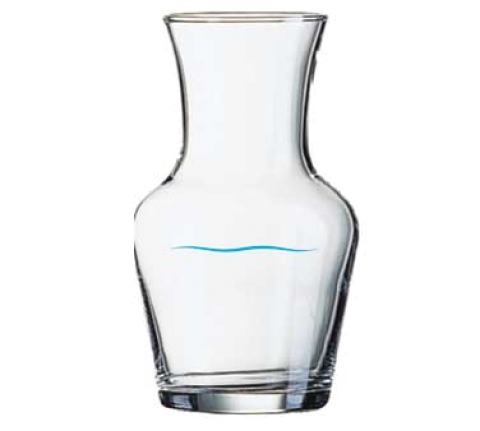 Carafe, 8-1/4 oz. (1/4 L), 5-1/4"H, with blue wave pour line, glass, Arcoroc, Wine by the Glass, clear (H 51/4" T 2-1/4" B 2-1/4" M 3-1/8")