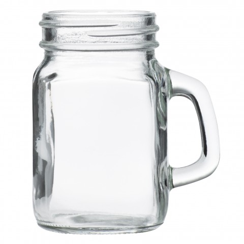 Mason Jar, 4-3/4 oz., with handle, glass, clear, Arcoroc (H 3-3/8"; T 1-3/4"; B 1-3/4"; M 2-7/8")