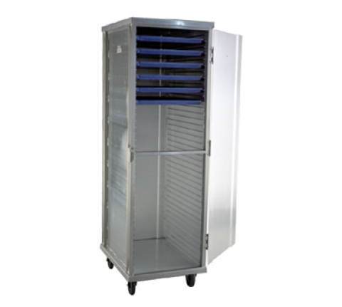 Storage Cabinet, heated, enclosed style with hinged doors, extruded side panels, aluminum construction, holds 18- 18" x 26" trays, 1-1/2" centers, overall 23-3/4"W x 30"D x 38"H, 5" casters