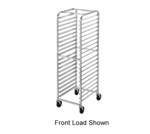 Bun Pan Rack, All-Welded, Economy Series, 28.5"W x 18"D x 70.25"H, Aluminum Construction, Side Load, 3" Angle Spacing, (20) 18" x 26" pans, 5" Swivel Stem Casters model # CSS45O, Made in USA, NSF, 30lbs. (ITEM WEIGHT ONLY), weight does not include 50 lbs. for pallet weight