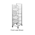 Bun Pan Rack, All-Welded, Stainless Series, 28.5"W x 18"D x 64"H, Stainless Steel Construction, Side Load, 2" Angle Spacing, (27) 18" x 26" pans, 5" Swivel Stem Casters model # CSS45PU, Made in USA, NSF, 65lbs. (ITEM WEIGHT ONLY), weight does not include 50 lbs. for pallet weight