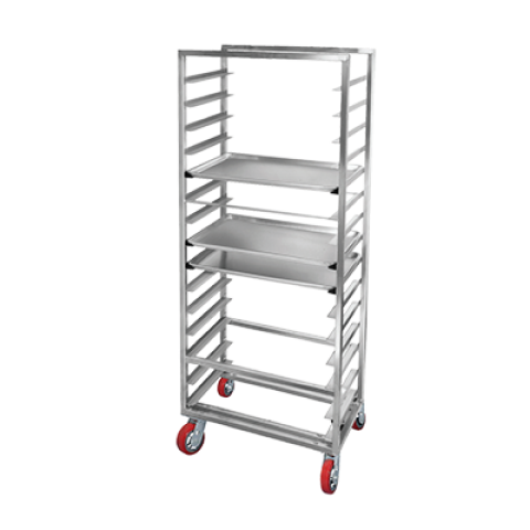 Bun Pan Rack, LifeTime Tough, EXTRA Heavy-Duty Series, 29"W x 18"D x 70"H, Aluminum Construction, Side Load, 6" Angle Spacing, (10) 18" x 26" pans, 5" x 2" Heavy-Duty Swivel Plate Casters w/ Zerk Grease Fitting model # CPS25U, Made in USA, NSF, 40lbs. (ITEM WEIGHT ONLY), weight does not include 50 lbs. for pallet weight
