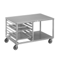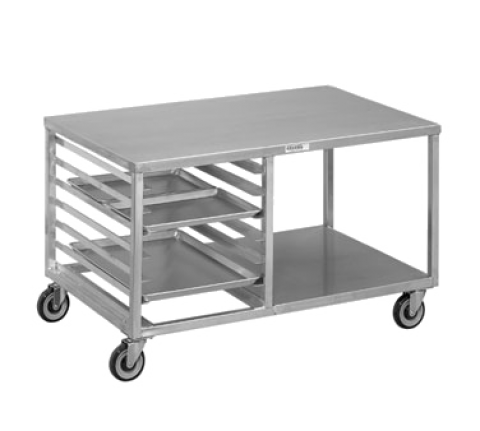 Equipment Stand, Convection Oven Stand, 48"W x 30"D x 29"H, Aluminum Construction, End Load, 3" Angle Spacing, (7) 18" x 26" or (14) 13" x 18" pans (2 per shelf), 5" Swivel Plate Casters model # CPS45U, Made in USA, 59lbs. (ITEM WEIGHT ONLY), double section, weight does not include 50 lbs. for pallet weight