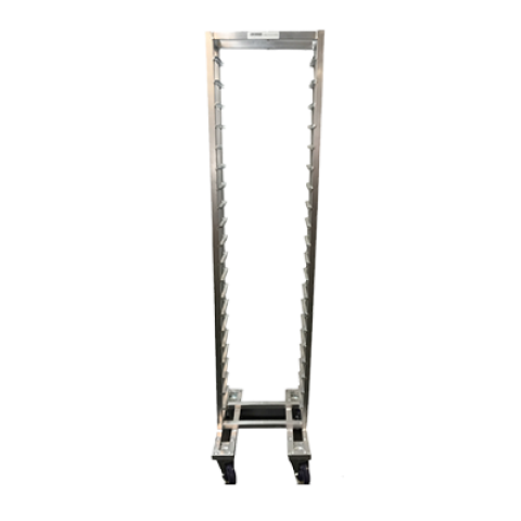 Steam Table Pan Rack, Lo Profile Nesting Rack, 15.25"W x 18.5"D x 70.25"H, Aluminum Construction, End Load, 3" Angle Spacing, (19) 12" x 20" steam table pans, 5" Swivel Plate Casters model # CPS45U, Made in USA, NSF, 26lbs. (ITEM WEIGHT ONLY), weight does not include 50 lbs. for pallet weight